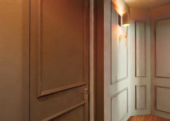 Une des portes coulissantes du placard a été remplacée par un miroir, stratégie permettant d’ajouter de la profondeur à la pièce avec un minimum d’encombrement. Derrière la porte du salon, des porte-manteaux intégrés restent discrètement cachés, utilisant chaque centimètre disponible et préservant l’esthétique de l’espace. Un meuble d’entrée, choisi pour son design et sa faible profondeur, accueille avec élégance sans pour autant sacrifier l’espace de circulation.